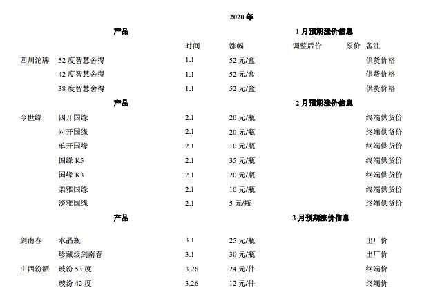 海底撈的漲價(jià)或許并不意外。更早之前,部分白酒企業(yè)已經(jīng)有所漲價(jià)。中信建投(601066)研報(bào)指出,水晶瓶劍南春和珍藏級(jí)劍南春出廠價(jià)于3月1號(hào)分別上調(diào)了25元/瓶、30元/瓶;4月1日起,水晶劍和珍藏劍的建議零售價(jià)也將進(jìn)行正式調(diào)整。其中,水晶劍的建議零售價(jià)將調(diào)整為489元/瓶,珍藏級(jí)劍南春的建議零售價(jià)調(diào)整為788元/瓶。3月27日,汾酒品系中的低端大單品――玻汾開始上調(diào)價(jià)格,從出廠價(jià)到終端供貨價(jià)都在上調(diào),其53度給終端的供貨價(jià)由原來的480元/件調(diào)至504元/件,42度終端價(jià)格由原來420元/件調(diào)至432元/件。