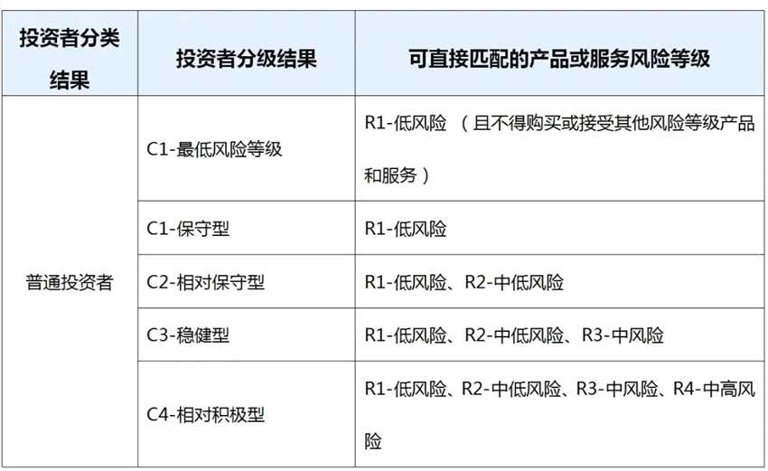以下是投資者與產(chǎn)品的等級匹配表: