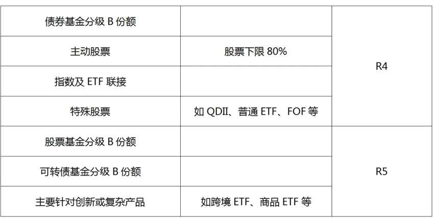 那么如何確定基金產(chǎn)品的風(fēng)險等級呢?根據(jù)《證券期貨投資者適當(dāng)性管理辦法》及《基金募集機構(gòu)投資者適當(dāng)性管理實施指引(試行)》等相關(guān)規(guī)定,在綜合參考產(chǎn)品類型、投資方向和投資范圍、流動性、到期時限、結(jié)構(gòu)復(fù)雜性、募集方式等因素的基礎(chǔ)上,可以對產(chǎn)品或者服務(wù)風(fēng)險等級依照其風(fēng)險水平由低至高劃分為不同的等級(R1至R5),便于投資者和銷售機構(gòu)了解產(chǎn)品的風(fēng)險屬性。