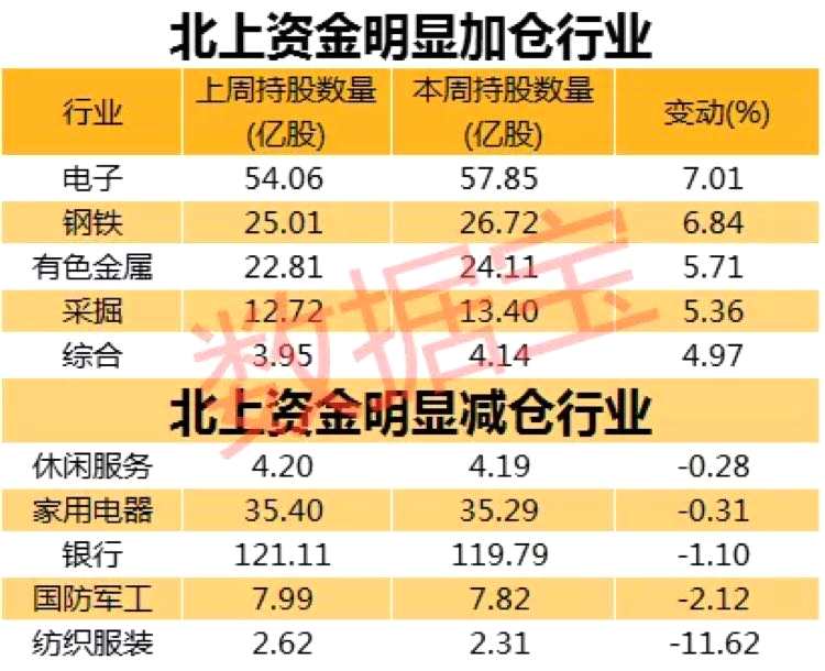 北上資金重點(diǎn)加倉電子行業(yè)