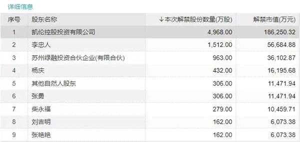 此外,數(shù)據(jù)顯示,4個(gè)月之后的10月26日,凱倫股份將迎來多達(dá)9090萬股的首發(fā)原股東限售股份解禁。