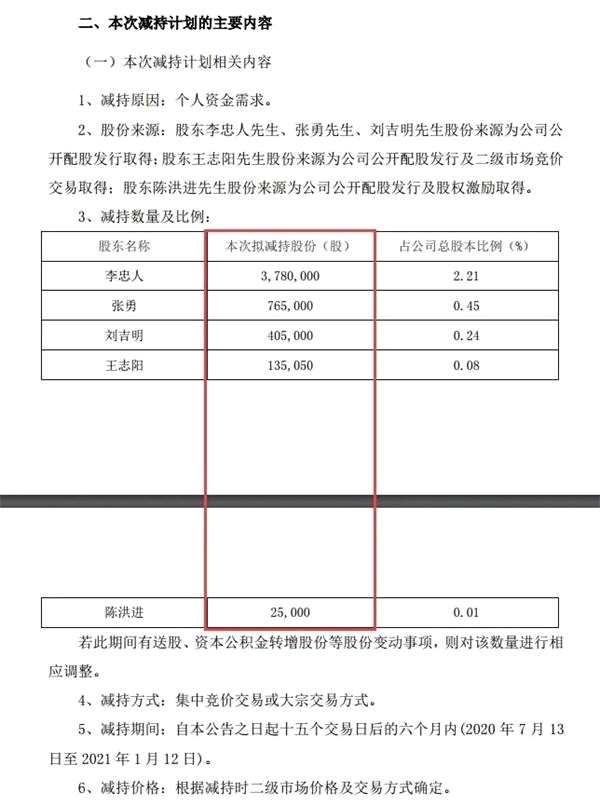6月18日,凱倫股份發(fā)布了《關(guān)于公司董事、監(jiān)事、高級(jí)管理人員及持股 5%以上股東減持股份的預(yù)披露公告》。公告顯示,因個(gè)人資金需求,公司董事/總經(jīng)理、副總經(jīng)理、監(jiān)事會(huì)主席、監(jiān)事、副總經(jīng)理共5人,擬在2020年7月13日至2021年1月12日之間,以集中競價(jià)或大宗交易方式,合計(jì)減持約511萬股,占公司總股本比例2.99%,股份來源為公司公開配股發(fā)行、股權(quán)激勵(lì)及二級(jí)市場競價(jià)交易取得。