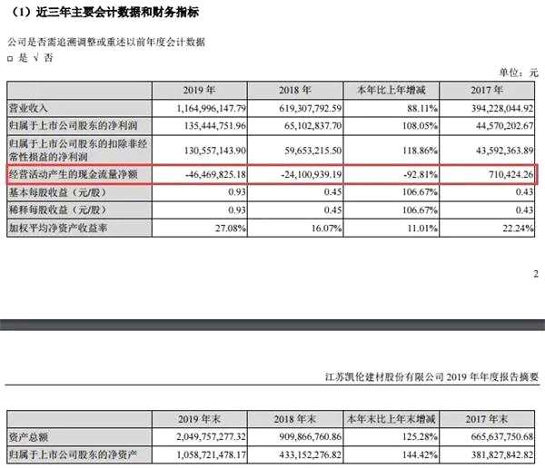 實(shí)際上,從年報(bào)摘要來看,并沒有明顯可挑剔的地方:營收同比增長88%,凈利同比增長超過100%,每股收益和資產(chǎn)同比增長率也在100%以上。唯一不足的是,已經(jīng)連續(xù)2年現(xiàn)金流為負(fù),并且2019年現(xiàn)金流為-4647萬元,同比減少了超過90%。