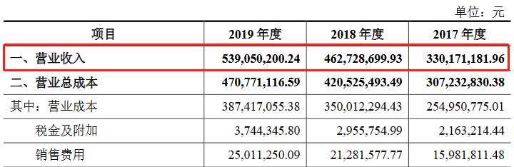 財務(wù)數(shù)據(jù)顯示,2017年-2019年,營業(yè)收入分別為3.30億元、4.63億元、5.39億元,凈利潤分別為0.21億元、0.37億元、0.65億元。