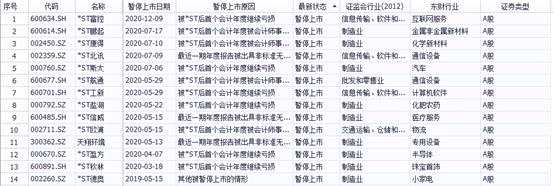 值得一提的是,截至記者發(fā)稿,A股市場(chǎng)上共有14家公司處于“暫停上市”的狀態(tài),包括*ST歐浦(002711)、*ST鹽湖(000792)、*ST工新(600701)、*ST航通(600677)。其中,13家公司是在2020年被暫停上市。