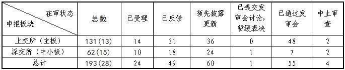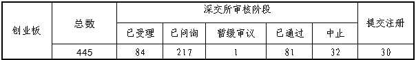 摘要: 本期(12月28日―12月31日)新增申報企業(yè)65家,其中上交所19家(主板3家,科創(chuàng)板16家),深交所46家(中小板4家,創(chuàng)業(yè)板42家)。截至12月31日,今年新增申報企業(yè)841家。