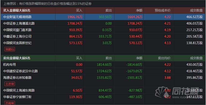 吉藥控股盤后龍虎榜數(shù)據(jù)顯示,中國中金財富證券有限公司無錫清揚路證券營業(yè)部凈買入1664.26萬元,中信證券股份有限公司上海漕溪北路證券營業(yè)部凈買入1708.24萬元。另有一機構(gòu)專用賬戶凈賣出1814.60萬元。