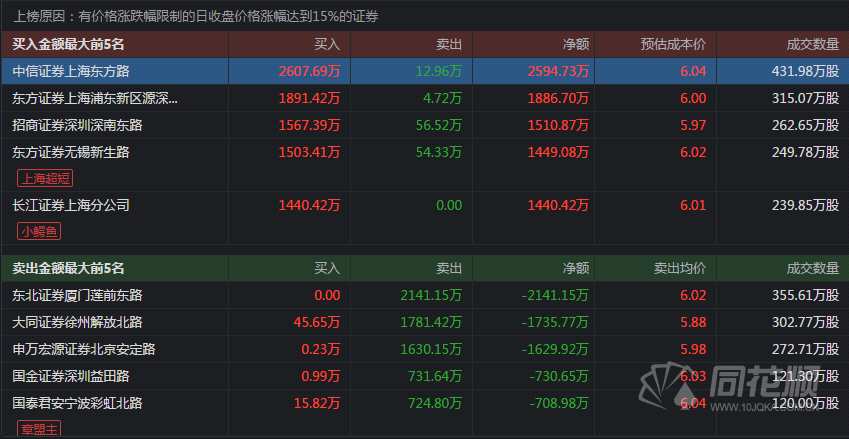 龍虎榜資金動向: