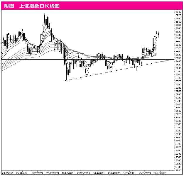 摘要: 本周,上證指數(shù)的圖表形態(tài)目標3585點已經(jīng)達到,指數(shù)強烈突破至壓力位上。