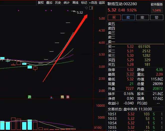 近期摘帽的聯(lián)絡互動大爆發(fā),今日上午再度一字漲停,該股在ST摘帽前已經(jīng)2個一字板漲停,而后又是連續(xù)10%一字漲停,到今日上午已是連續(xù)7個一字漲停。
