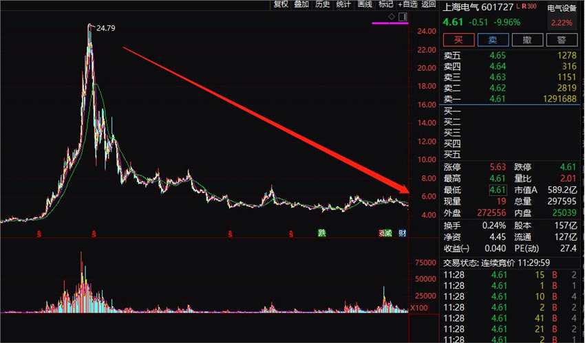 昨日晚間,突然曝出83億巨大利空,800億市值的上海電氣(601727)今日上午A、H股暴跌,A股一字跌停,H股盤中跌超20%。上海電氣股價K線走勢不斷走低。截至今年一季度末,上海電氣股東戶數(shù)29.82萬戶。