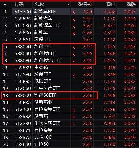 4只科創(chuàng)50指數(shù)相關的ETF也是大漲超2.6%。