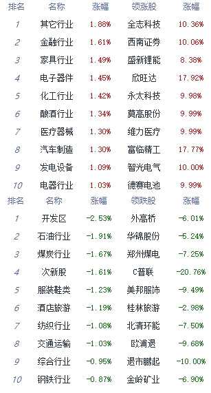 A股市場板塊及個股漲跌幅排行