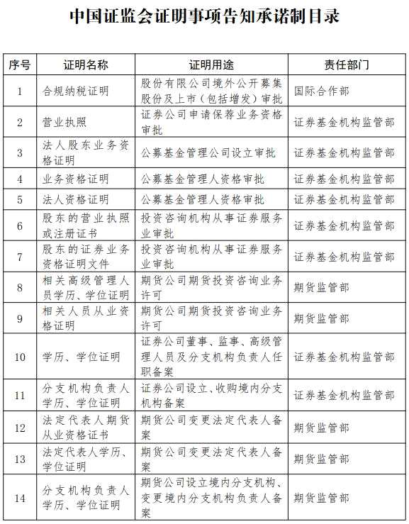 推進(jìn)“放管服”改革 證監(jiān)會(huì)對十四件證明事項(xiàng)實(shí)行告知承諾制