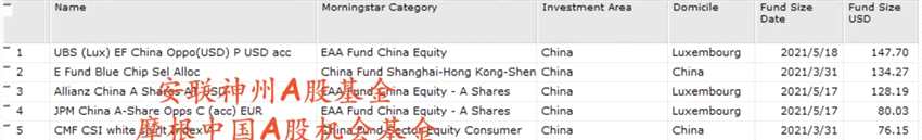全球部分規(guī)模較大的中國(guó)股票基金
