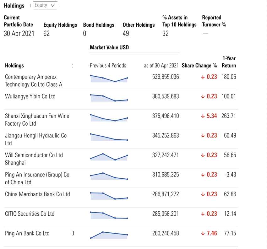 瑞銀(盧森堡)中國(guó)精選股票基金(美元)4月底十大持倉(cāng)