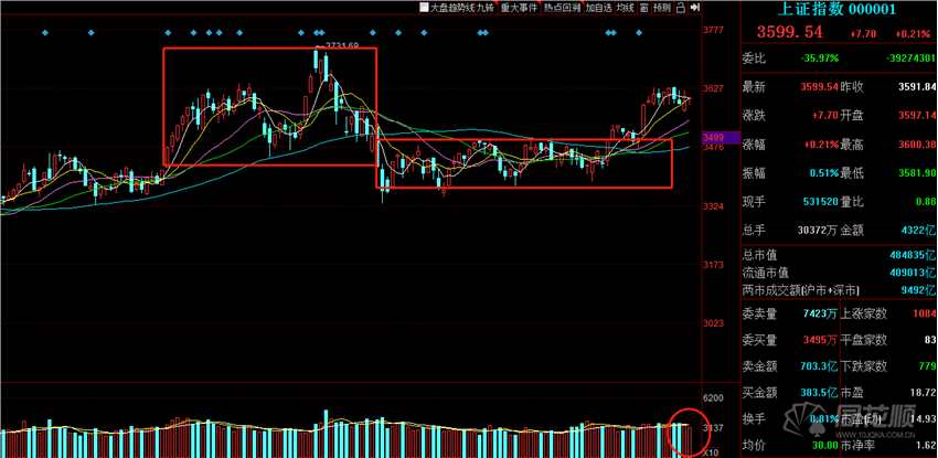 上證指數(shù)在5月26日站上3600點(diǎn)整數(shù)關(guān)口以后,市場(chǎng)成交量并沒(méi)有有效持續(xù)性放大,反而在萬(wàn)億附近走平,伴隨著北向資金凈買入量的下移,市場(chǎng)增量資金不明顯,最終導(dǎo)致了指數(shù)橫盤板塊輪動(dòng)的局面。今日兩市成交量有走低跡象,上證指數(shù)連續(xù)9個(gè)交易日人在3600點(diǎn)附近橫盤,市場(chǎng)震蕩之際,板塊呈現(xiàn)為快速輪動(dòng)的走勢(shì),未來(lái)大概率在3600附近開(kāi)辟全新的箱體。在這個(gè)階段操作策略上務(wù)必不要追漲買,分析當(dāng)下的行情,圍繞中報(bào)業(yè)績(jī)預(yù)期去逢底低吸布局是一個(gè)更為穩(wěn)妥的策略。