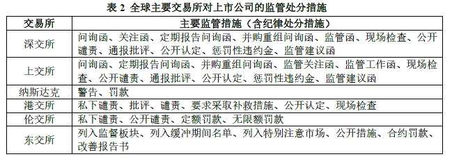 我國(guó)交易所的監(jiān)管手段比境外多,但與承擔(dān)的職責(zé)仍不匹配。深滬交易所的監(jiān)管“工具箱”已經(jīng)涵蓋了境外主要交易所的各類監(jiān)管措施(見(jiàn)表2),面臨的主要問(wèn)題是監(jiān)管職責(zé)過(guò)大,很多情況超過(guò)了自律監(jiān)管的范疇,加上部分措施沒(méi)有被充分使用,如公開(kāi)認(rèn)定的頻次較少、懲罰性違約金如何落地仍待探索、現(xiàn)場(chǎng)檢查受限于交易所不具備強(qiáng)制執(zhí)法權(quán)等。這導(dǎo)致監(jiān)管對(duì)抗事件偶有發(fā)生,惡性違法違規(guī)事件中交易所的監(jiān)管抓手不多。
