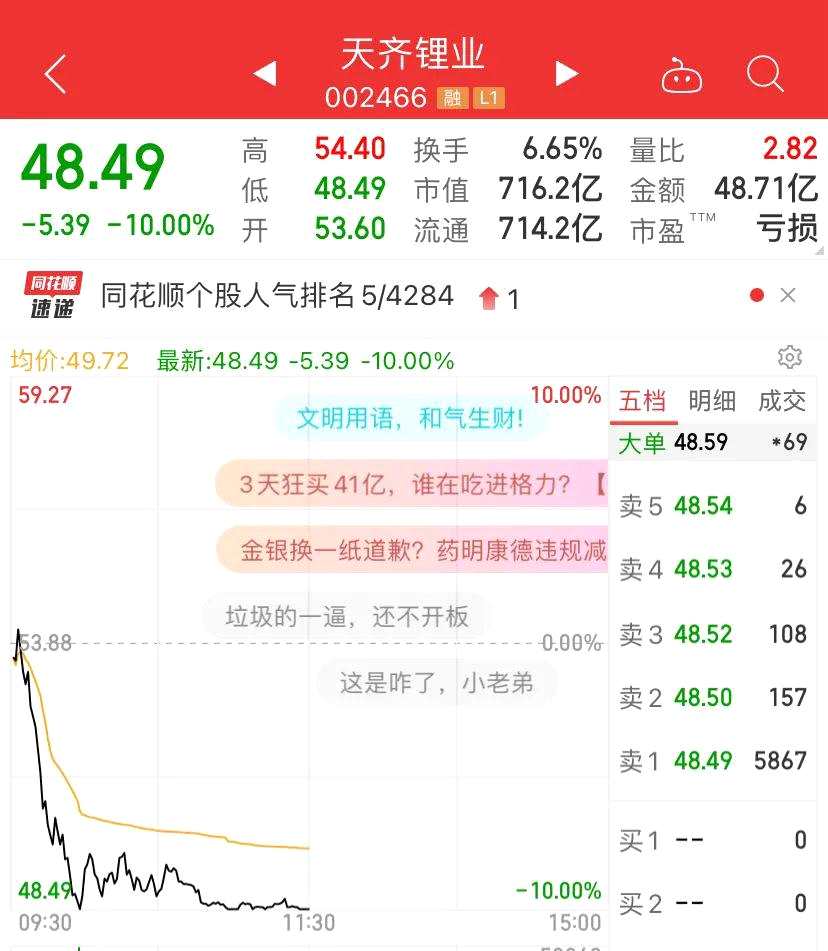 700億天齊鋰業(yè)突發(fā)跌停