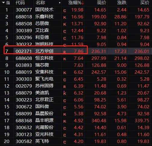 不過,景氣的芯片股半導(dǎo)體股漲幅領(lǐng)先,國(guó)民技術(shù)(300077)20%漲停,1000多億市值的北方華創(chuàng)(002371)漲近8%。