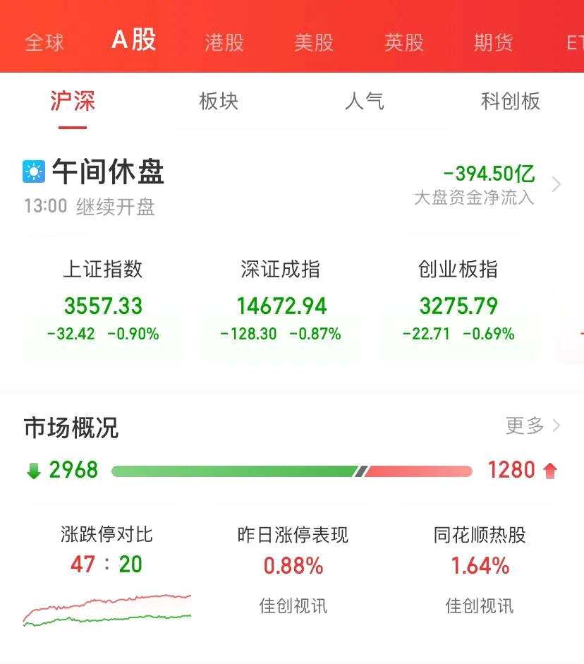 億萬股民朋友可能沒想到,節(jié)后A股開盤就以跳水開市,一路下挫動(dòng)蕩,上午收盤,上證指數(shù)跌0.9%,深證成指跌0.87%,創(chuàng)業(yè)板指數(shù)跌0.69%,兩市成交額6603億元,個(gè)股更是慘烈,將近3000只下跌,1280只上漲,2968只下跌。