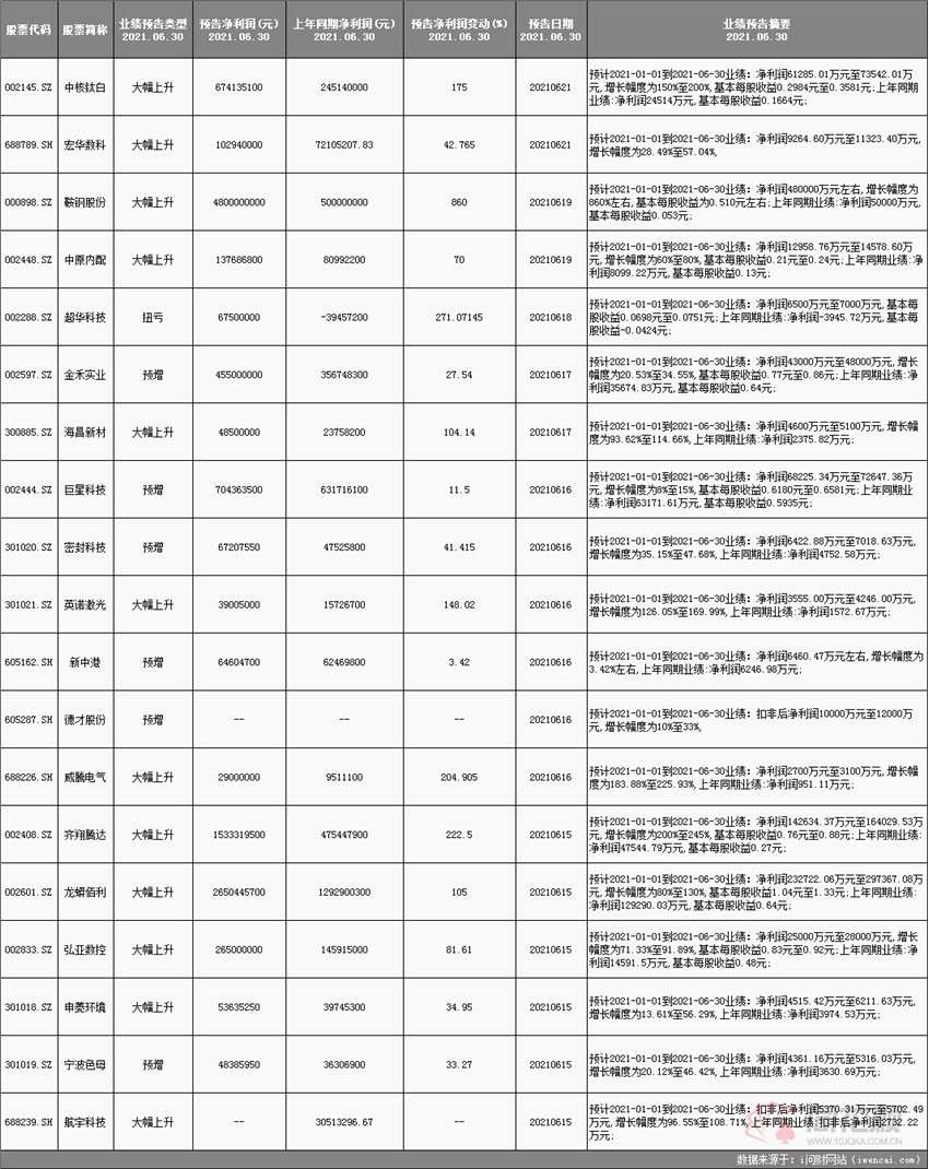 2021年6月15日之后上市公司中報(bào)業(yè)績預(yù)告情況: