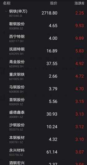 6月21日上午,鋼鐵股開盤表現活躍,特鋼概念領漲申萬一級行業(yè)板塊,半日上漲2.25%,鞍鋼股份、西寧特鋼(600117)漲停,撫順特鋼(600399)、【馬鋼股份(600808)、股吧】(600808)、重慶鋼鐵(601005)等紛紛拉升。