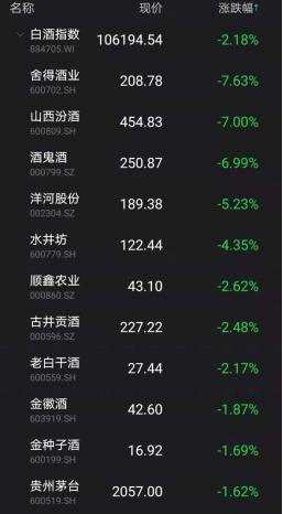 今日上午,白酒概念跌幅擴大,舍得酒業(yè)(600702)跌超7%,酒鬼酒(000799)、山西汾酒(600809)、洋河股份(002304)集體下探。