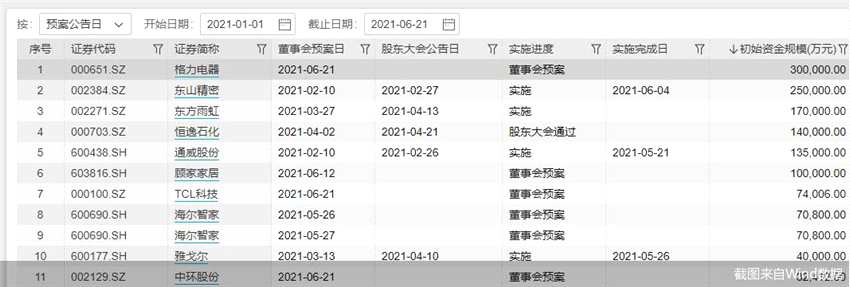 上述推出員工持股計劃的118股中,按初始資金規(guī)模進行統(tǒng)計,奧士康(002913)、煌上煌(002695)、【寶新能源(000690)、股吧】(000690)等45股初始資金規(guī)模超億元,顧家家居(603816)、通威股份(600438)、恒逸石化(000703)、東方雨虹(002271)、東山精密(002384)、格力電器6股初始資金規(guī)模在10億元(含)以上。