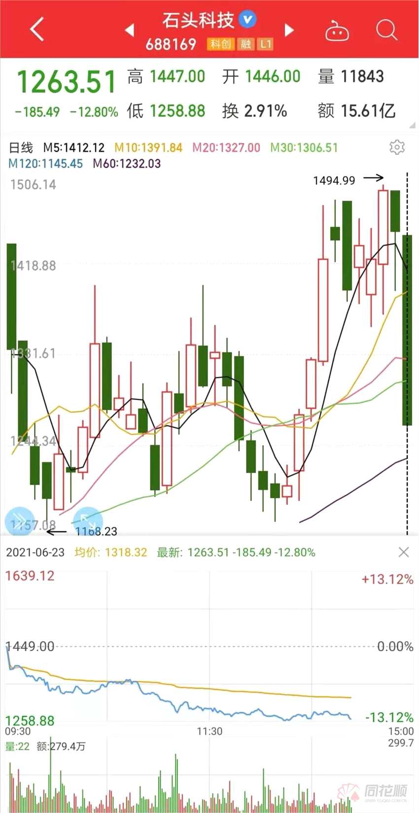 而就在兩天前,石頭科技還創(chuàng)下了歷史新高,股價(jià)最高漲到1495元,離1500元大關(guān)只差臨門(mén)一腳。