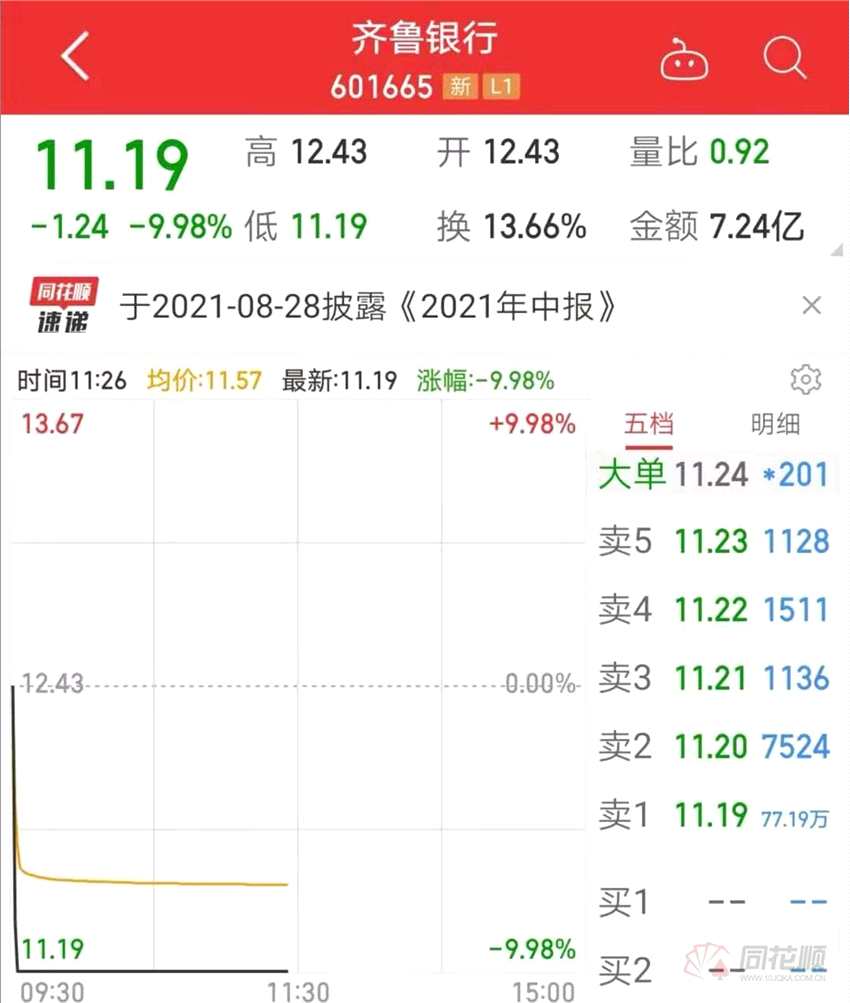 2分鐘跌停!齊魯銀行(601665)止步6連板。