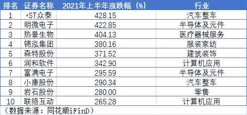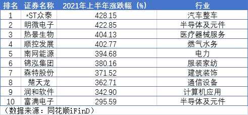在上表中,順控發(fā)展、南網(wǎng)能源(003035)(003035.SZ)、楚天龍均為年內(nèi)新上市個(gè)股。剔除這三家后,與華為合作造車的小康股份(601127)(601127.SH)、白酒概念股巖石股份(600696)(600696.SH)、電商企業(yè)【聯(lián)絡(luò)互動(dòng)(002280)、股吧】(002280.SZ)將進(jìn)入上半年漲幅前十榜單。