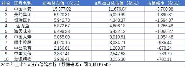 有人得意,也有人失意。在A股上半年的市值縮水榜上,出現(xiàn)了不少藍(lán)籌股的身影。