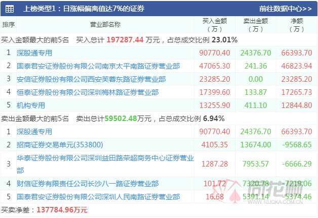 天華超凈,龍虎榜數(shù)據(jù)方面,深股通買入8107萬元并賣出4841萬元,興業(yè)證券陜西分公司(方新俠)買入4747萬元,中信證券上海溧陽路買入4266萬元,兩家機(jī)構(gòu)合計買入7064萬元,賣出榜單上同樣未出現(xiàn)機(jī)構(gòu)身影。