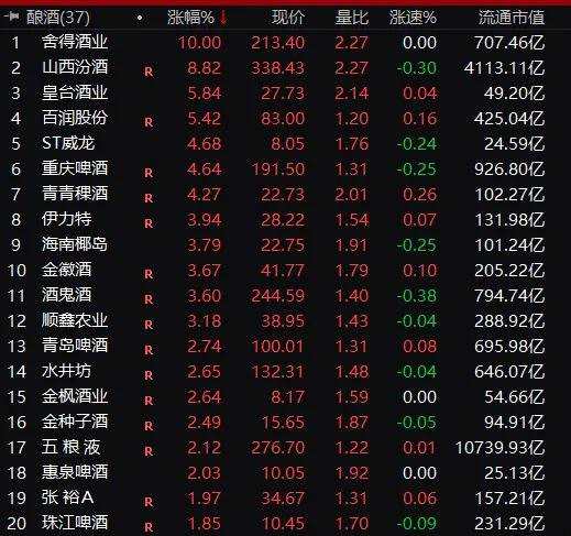 白酒股大漲:700億舍得漲停