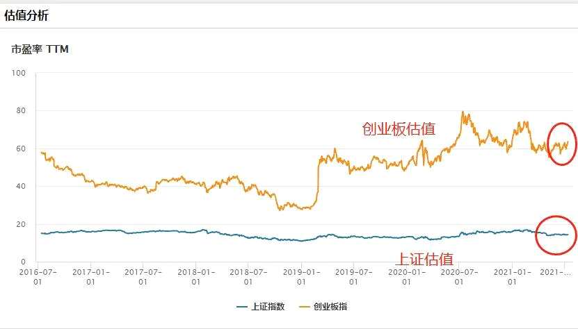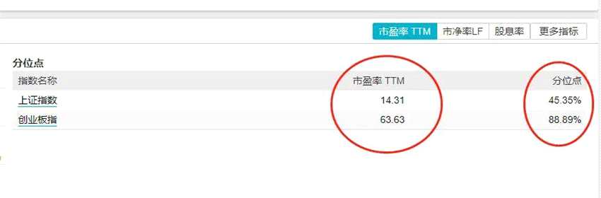創(chuàng)業(yè)板指的市盈率估值比上證貴3倍多