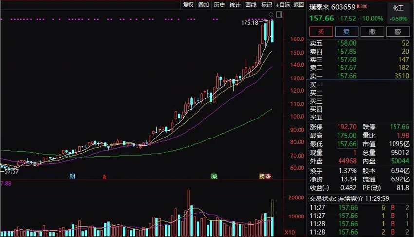 近期持續(xù)暴漲的千億市值鋰電龍頭璞泰來,突發(fā)跌停。