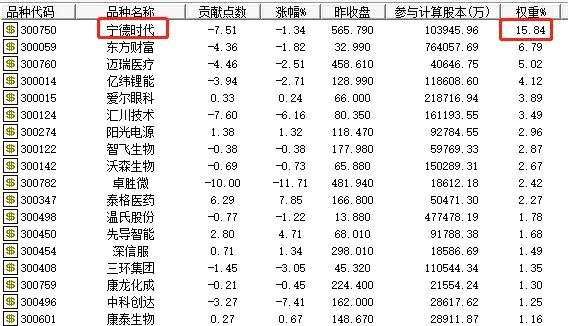 創(chuàng)業(yè)板指數(shù)這兩年之所以能從1100多點(diǎn)起步,趕上2200多點(diǎn)出發(fā)的上證,明顯得益于寧德時代為代表的新經(jīng)濟(jì),新能源、醫(yī)療等權(quán)重股這幾年漲幅驚人。寧德時代已經(jīng)占到創(chuàng)業(yè)板的權(quán)重超過15%。