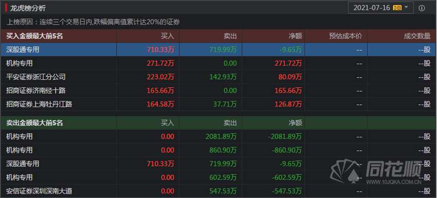 7月16日,鹽津鋪子盤后三日龍虎榜數(shù)據(jù)顯示,深股通專用賬戶買入710.33萬元,賣出719.99萬元,凈賣出9.65萬元。另有一機構專用賬戶凈買入271.72萬元。除此之外更多的機構選擇出逃。三機構專用賬戶分別凈賣出2081.89萬元、860.90萬元、602.59萬元。