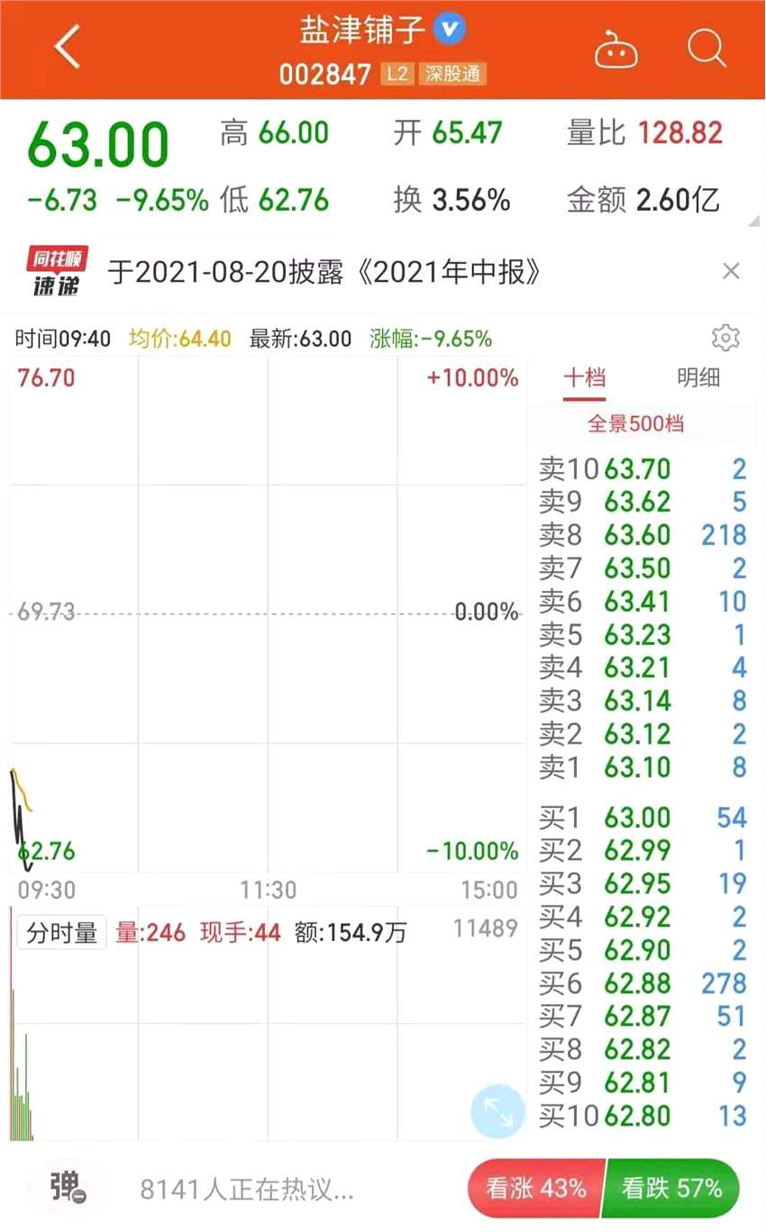 摘要: 7月20日早盤,此前走出三聯(lián)跌停的鹽津鋪子(002847)終于打開跌停板,低開約6%,隨后股價繼續(xù)持續(xù)走低盤中多次觸及跌停板。截至發(fā)稿,跌幅約9.69%。顯然實際控制人增持公司股票投資者并不買賬。