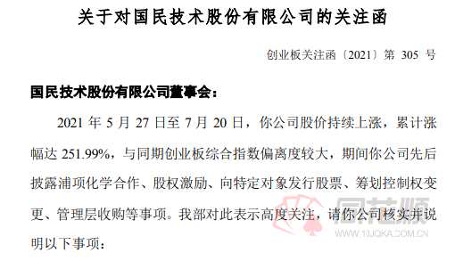 7月20日晚間,國民技術(300077)公告,深交所下發(fā)問詢函,要求公司補充說明本次孫迎彤擬通過認購公司非公開發(fā)行股票取得公司控制權的主要考慮、目的。