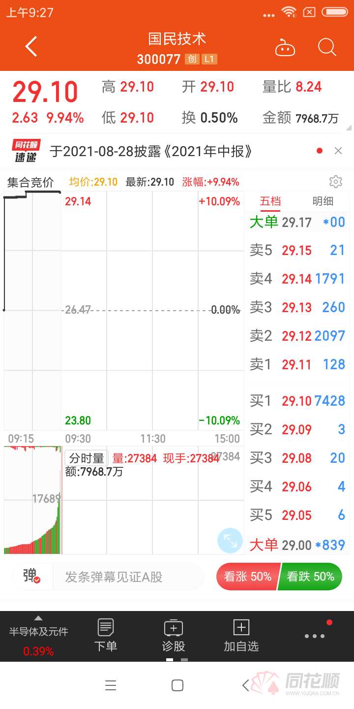 7月20日,國民技術高開9.94%,3天漲幅接近60%。截至最新,國民技術報29.10元,市值超160億。