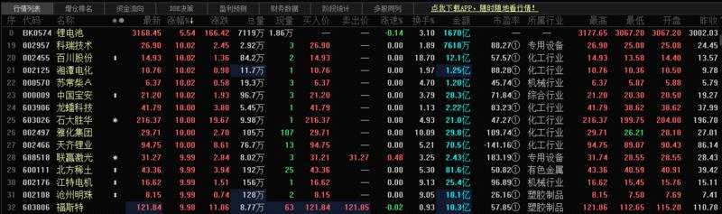 SMM 7月29日訊:今日早盤,鋰電池概念在經(jīng)歷連續(xù)3日的下跌之后,在磷酸鐵鋰電池的利好消息刺激下急速攀升。截止發(fā)稿,鋰電池指數(shù)一度漲超5.8%。包括江特電機(002176)、石大勝華(603026)、湘潭電化(002125)、雅化集團(002497)等在內(nèi)的超10股漲停,【融捷股份(002192)、股吧】(002192)、天際股份(002759)以及天齊鋰業(yè)(002466)等多股漲超8%,板塊一片其樂融融。