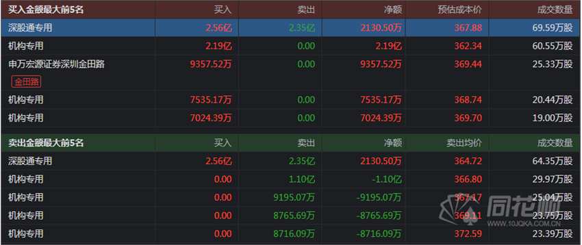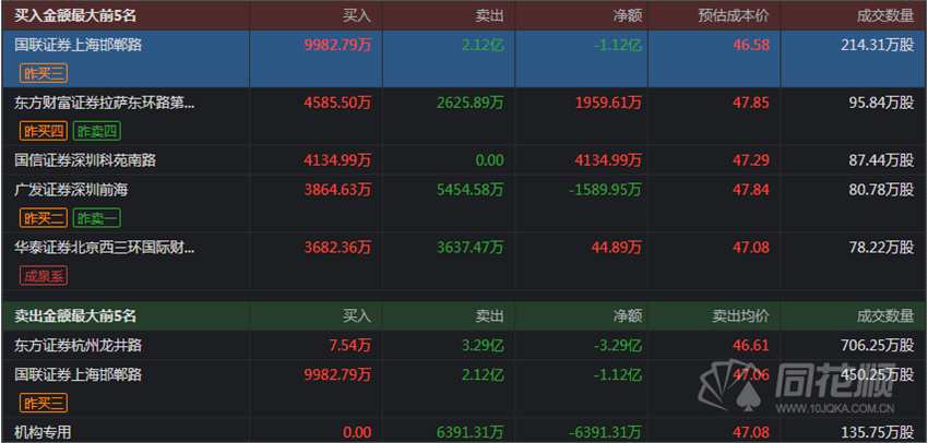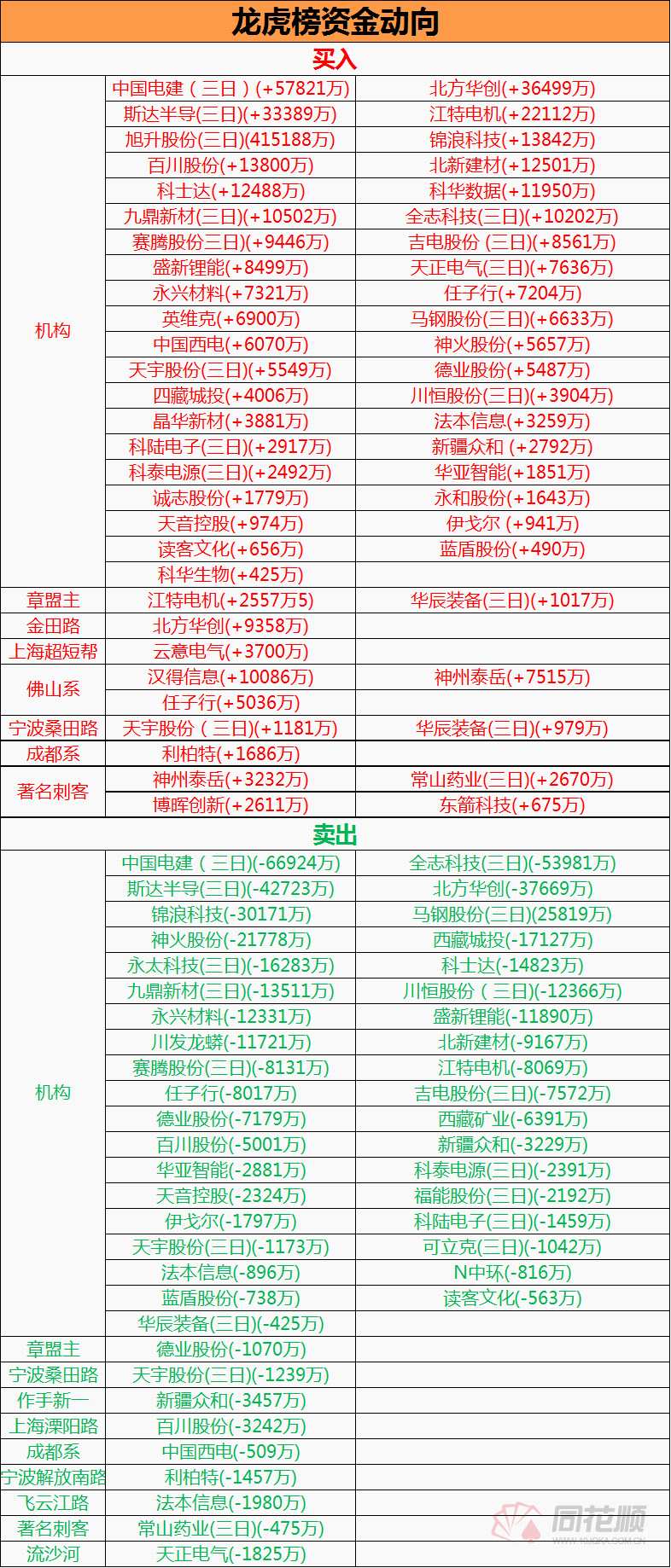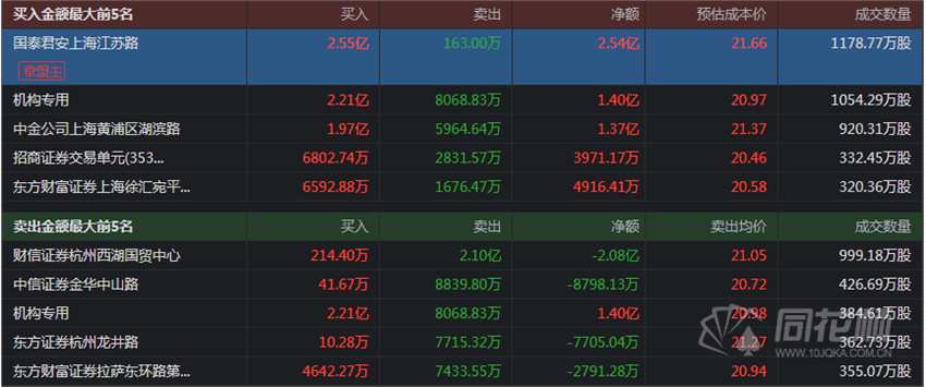 龍虎榜主要資金動向: