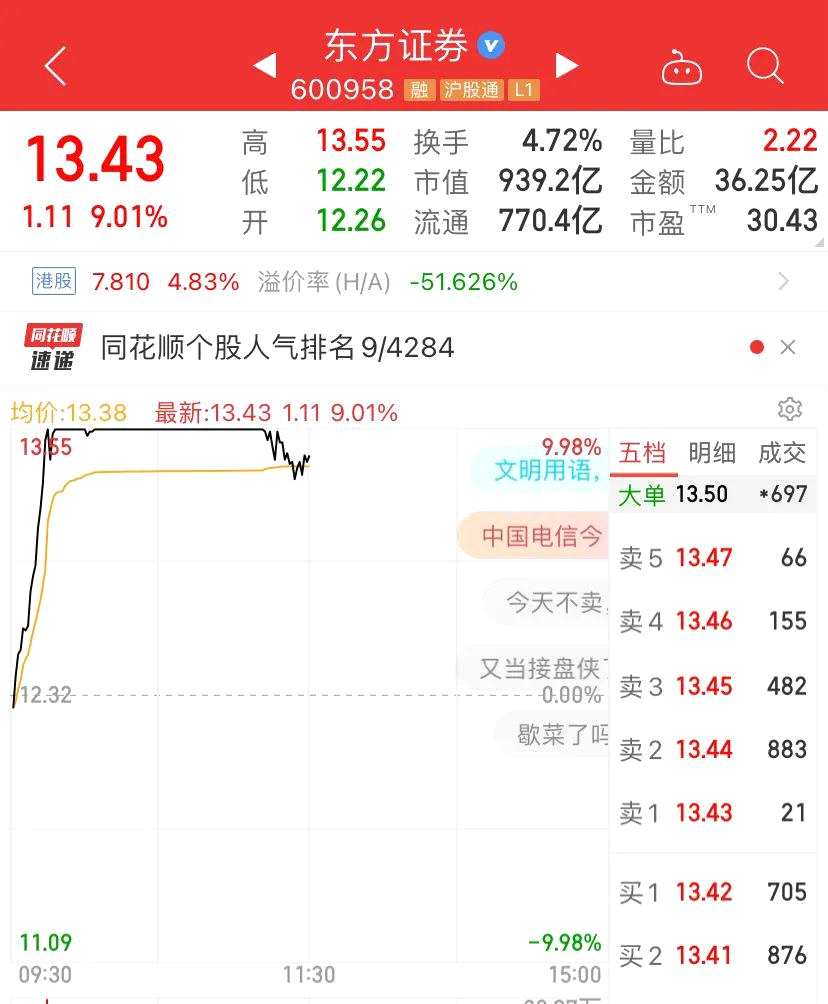 券商、保險(xiǎn)、銀行等金融板塊也再度活躍起來,東方證券盤中漲停,千億市值的廣發(fā)證券盤中觸發(fā)漲停。上午收盤有所回落,東方證券漲超9%。