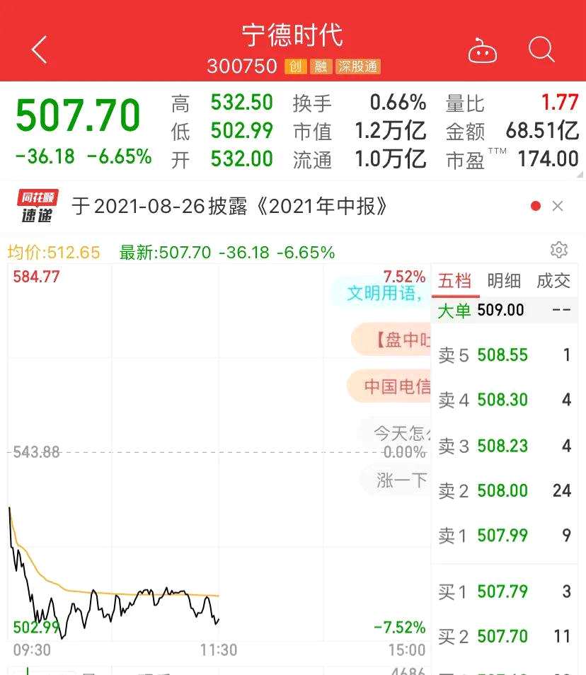 萬億巨頭寧德時(shí)代(300750)也暴跌6.65%,市值跌去800多億元。