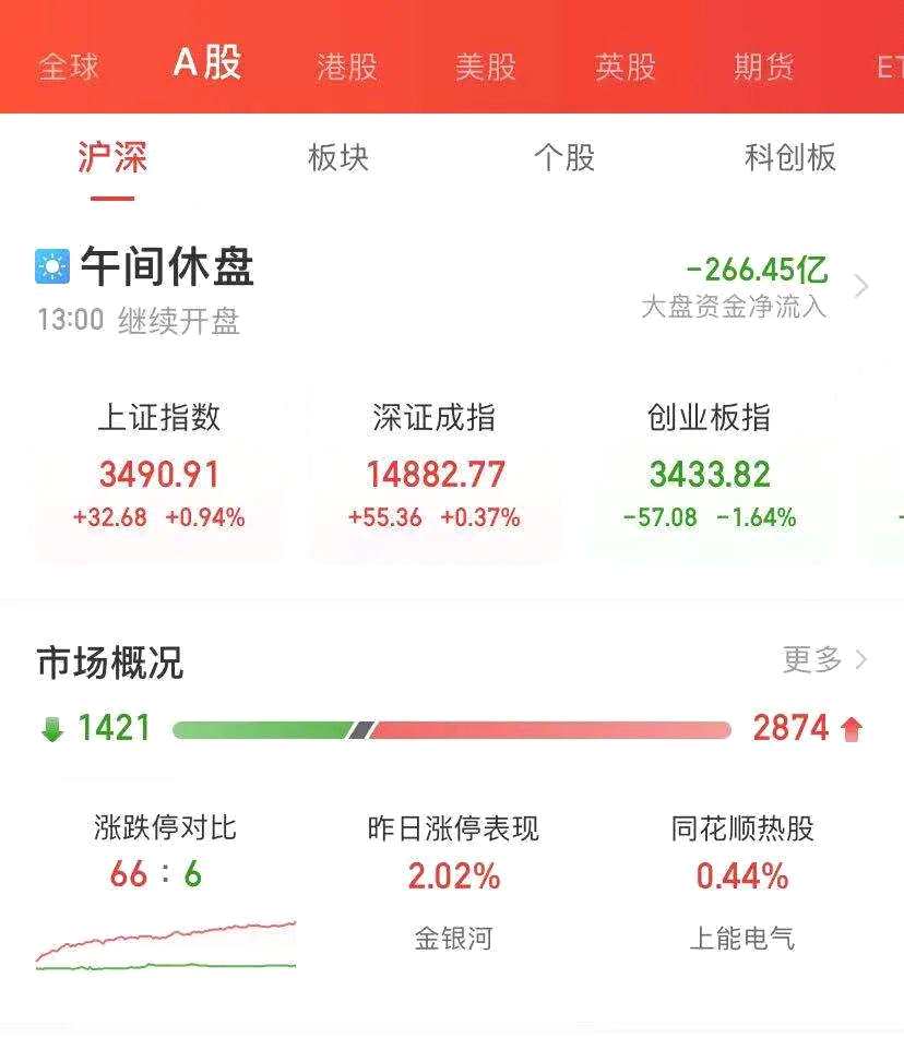 市場風(fēng)格劇烈變化,傳統(tǒng)藍(lán)籌較多的上證指數(shù)大漲,而新興熱門賽道集中的創(chuàng)業(yè)板科創(chuàng)板大跌,上證指數(shù)漲0.94%,深證成指漲0.37%,創(chuàng)業(yè)板指數(shù)大跌1.64%,科創(chuàng)50指數(shù)跌1.14%,個(gè)股漲多跌少,2874個(gè)上漲,1421個(gè)下跌,兩市成交額8308億元。