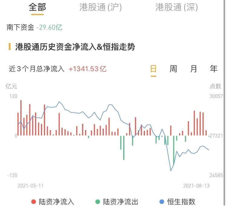 南下資金今日凈流出港股29.6億港元,前一交易日凈流出2.48億港元。