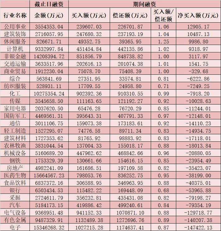 六、截至8月17日申萬(wàn)一級(jí)行業(yè)兩融交易情況
