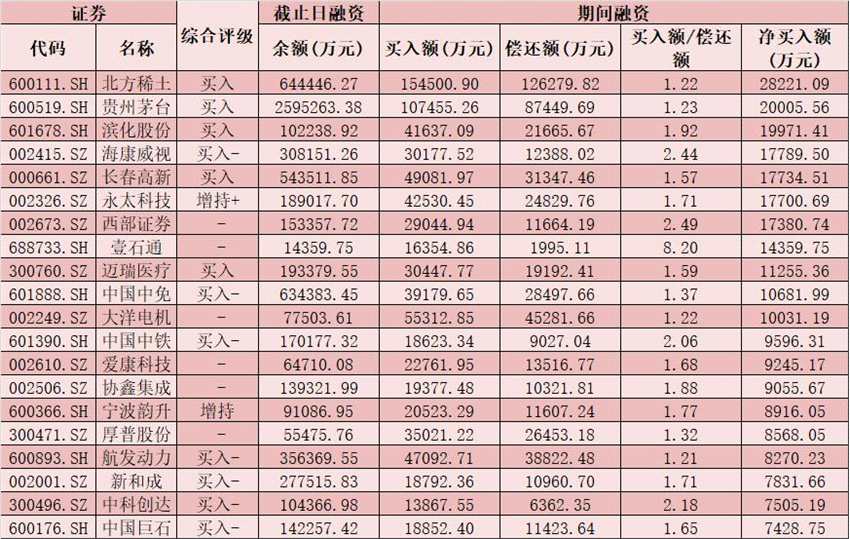 七、8月17日融資凈買入股TOP20